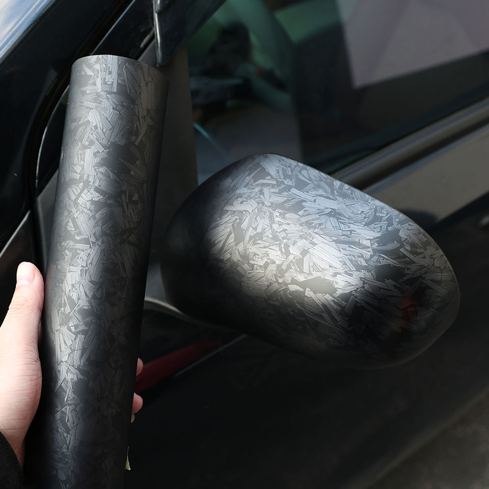 Adesivo in Fibra di Carbonio Forgiata Nera per Decorazione Auto, Texture Opaca Liscia, Coperture per Specchietti Laterali, Pellicola PPF per Cambio Colore Auto