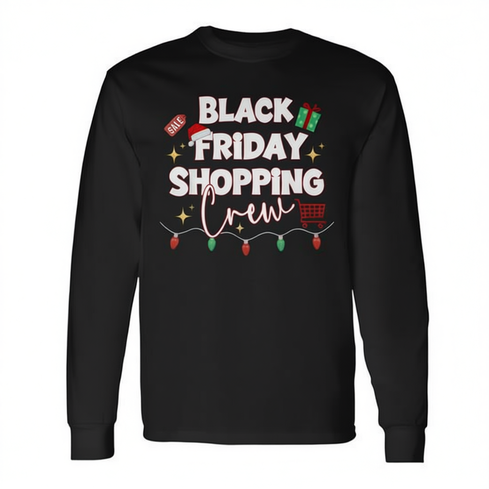 Maglietta a maniche lunghe Black Friday Shopping Crew Christmas per abbigliamento natalizio in famiglia