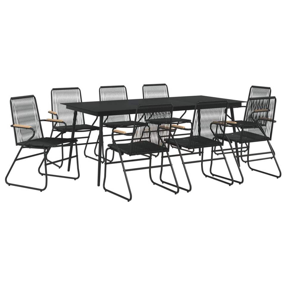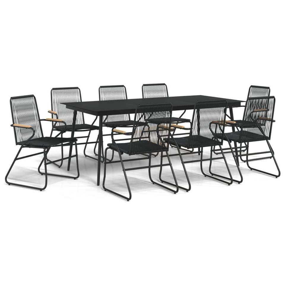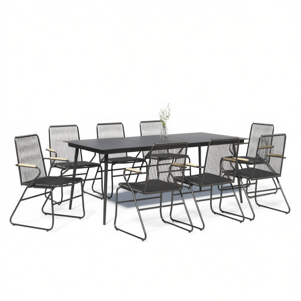 Set da Pranzo da Giardino Nero per 6 Persone, Struttura in Metallo, Arredamento Minimalista da Esterno Resistente alle Intemperie
