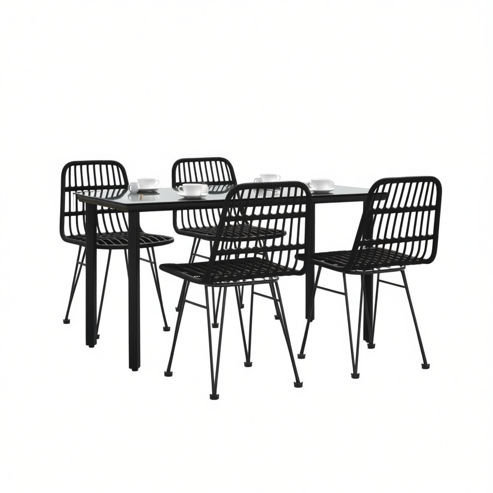 Set da Pranzo da Giardino Nero con Struttura in Metallo, 4 Posti, Arredamento Esterno Contemporaneo Resistente alle Intemperie