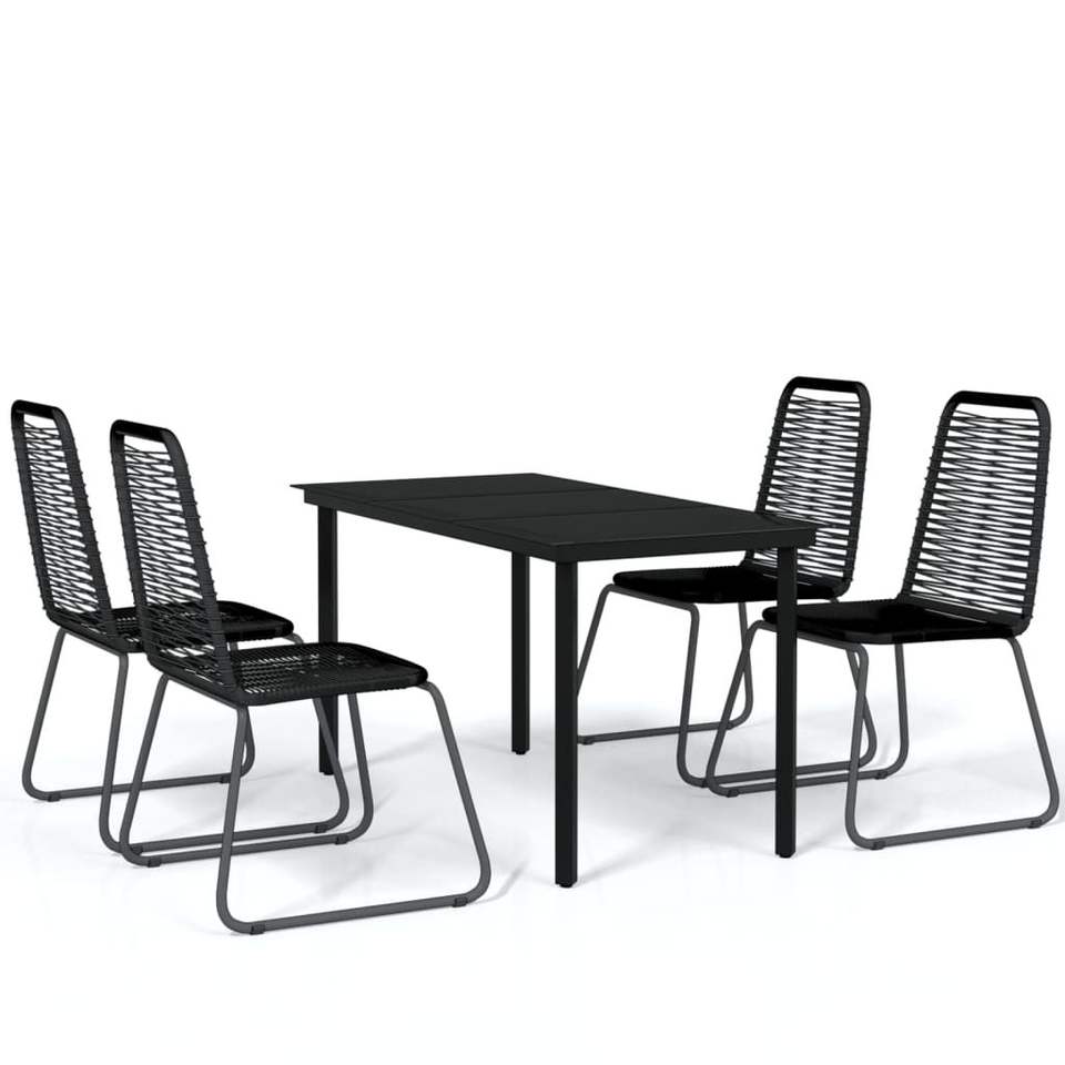 Set da Pranzo da Giardino Nero per 4 Persone, Struttura in Rattan e Metallo, Resistente alle Intemperie, Design Contemporaneo