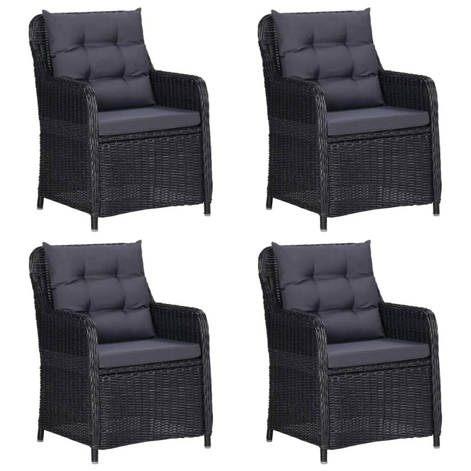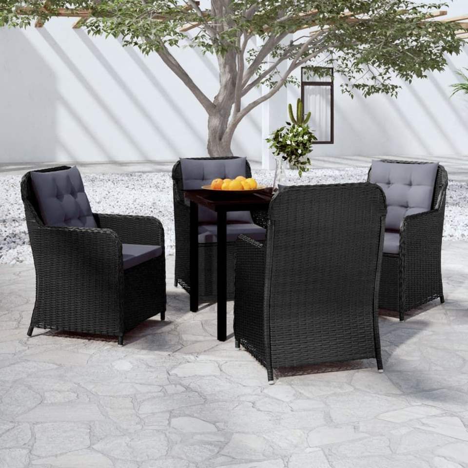 Set da Pranzo da Giardino in Rattan Nero per 4 Persone, Resistente alle Intemperie, Arredamento da Esterno in Stile Contemporaneo