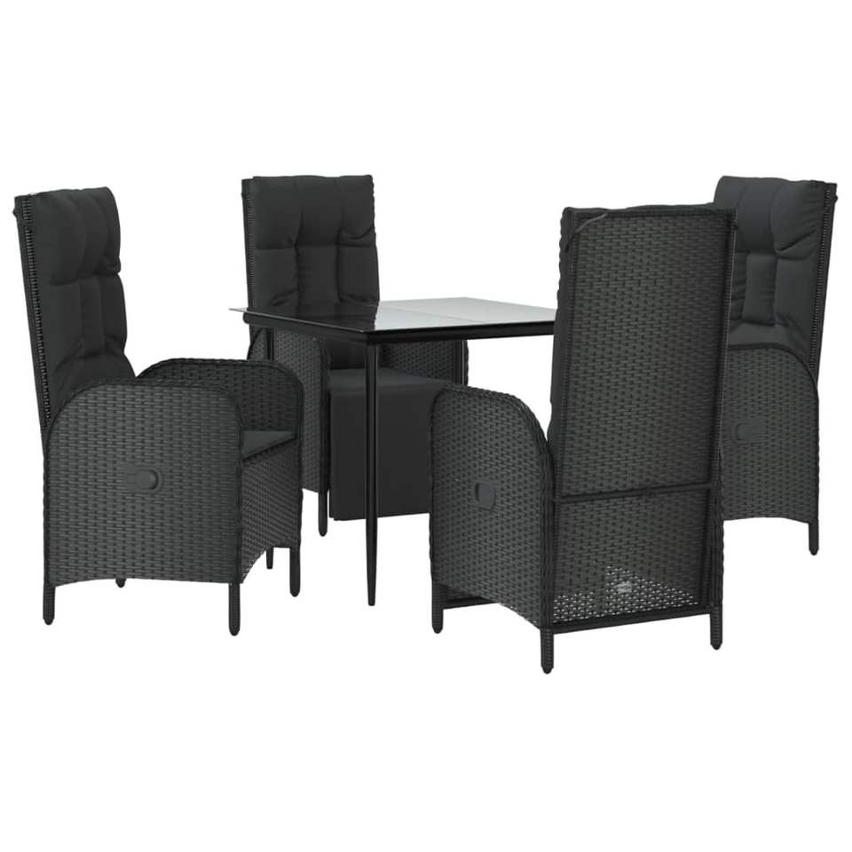 Set da Pranzo da Giardino in Rattan Nero per 4 Persone, Resistente alle Intemperie, Arredamento da Esterno