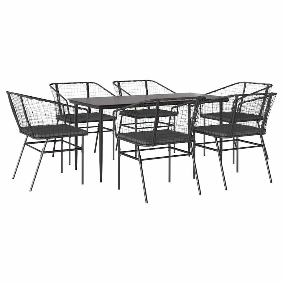 Set da Pranzo da Giardino Nero per 6 Persone, Struttura in Acciaio Resistente alle Intemperie, Arredamento Esterno Contemporaneo