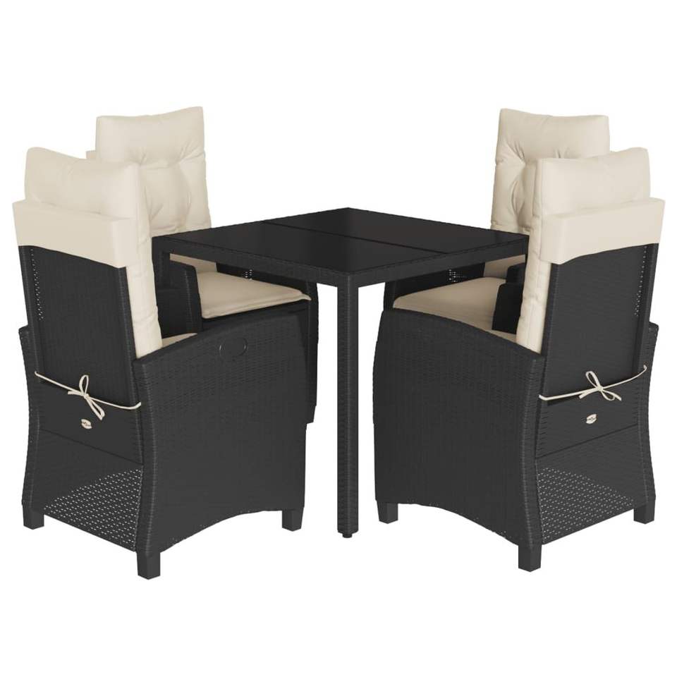 Set da Pranzo da Giardino in Rattan Nero per 4 Persone, Resistente alle Intemperie, Arredamento da Esterno in Stile Contemporaneo