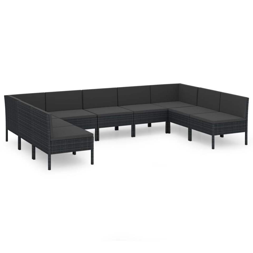 Set Lounge da Giardino in Rattan Nero 10+ Posti, Resistente alle Intemperie, Arredamento da Esterno dal Design Contemporaneo