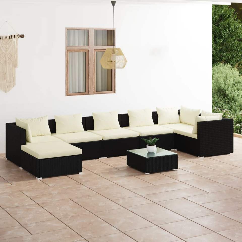 Set Lounge da Giardino in Rattan Nero per 6 Persone, Arredamento da Esterno Contemporaneo Resistente alle Intemperie, Divano da Patio con Tavolino