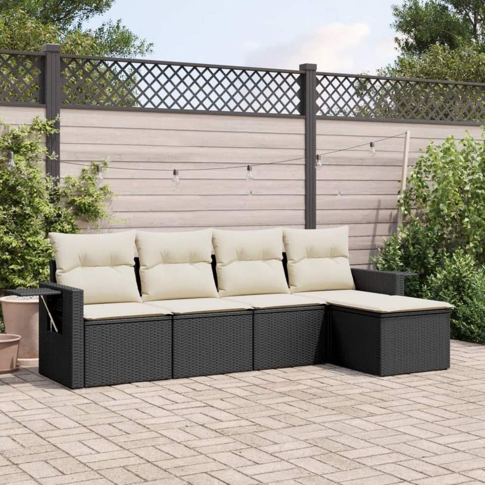 Set Divano da Giardino Nero con Cuscini, Resistente ai Raggi UV, in Rattan PE, Arredamento da Esterno dal Design Contemporaneo, Impermeabile