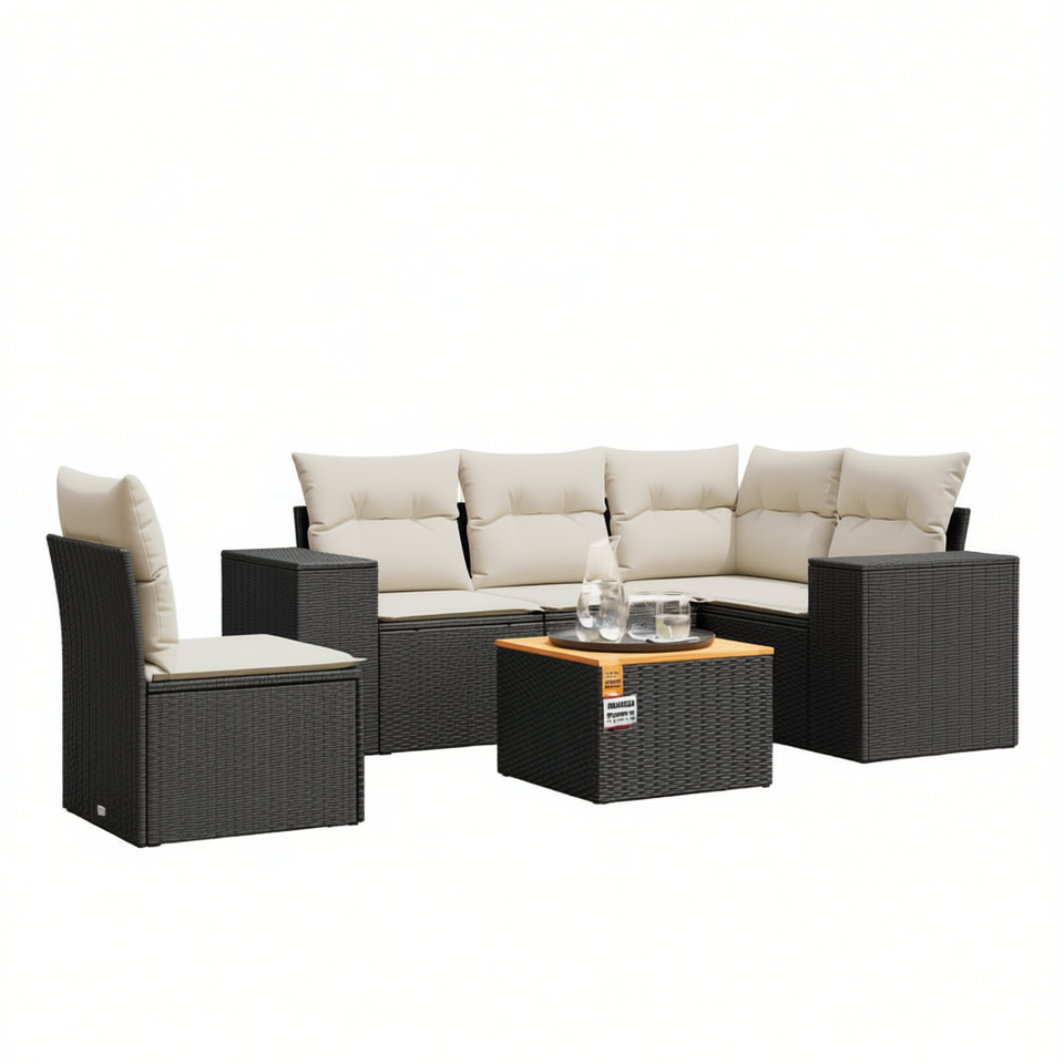 Black Rattan Patio Sofa Set 7 Seater Modern Outdoor Furniture for Garden Decking