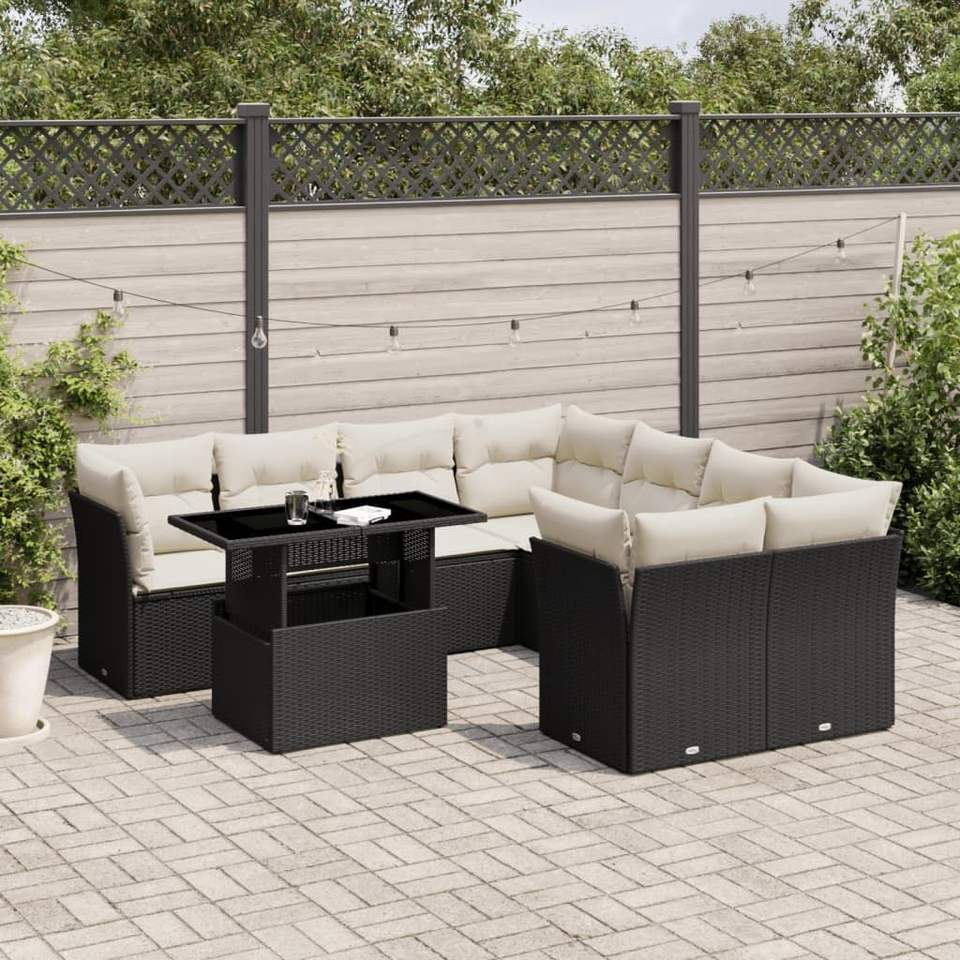 Set Divano da Giardino Nero con Cuscini, Resistente ai Raggi UV, in Rattan PE, Arredamento da Esterno dal Design Contemporaneo, Impermeabile
