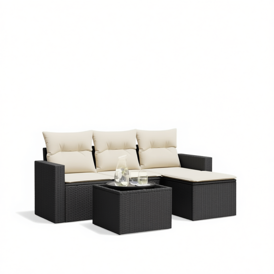 Set Divano da Giardino Nero in Rattan, Arredamento da Esterno a 3 Posti, Resistente alle Intemperie, Design Contemporaneo