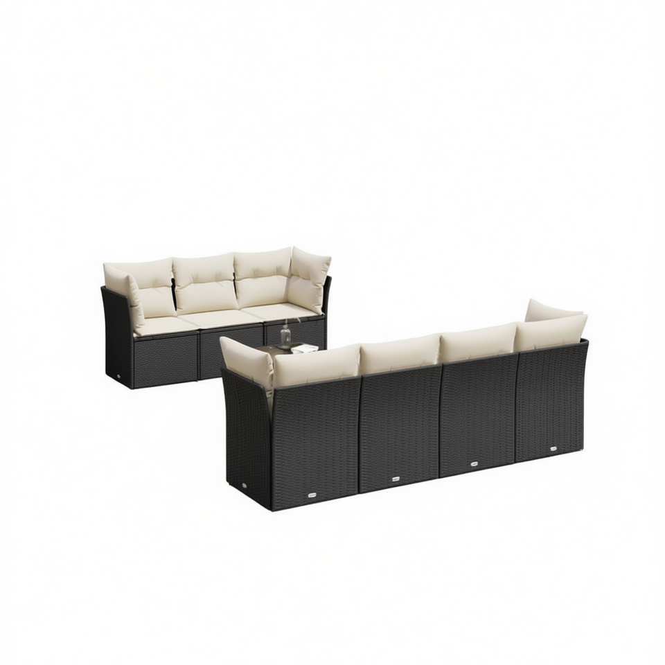 Set Divano da Giardino Nero con Cuscini, Resistente ai Raggi UV, in Rattan PE, Arredamento da Esterno dal Design Contemporaneo, Impermeabile