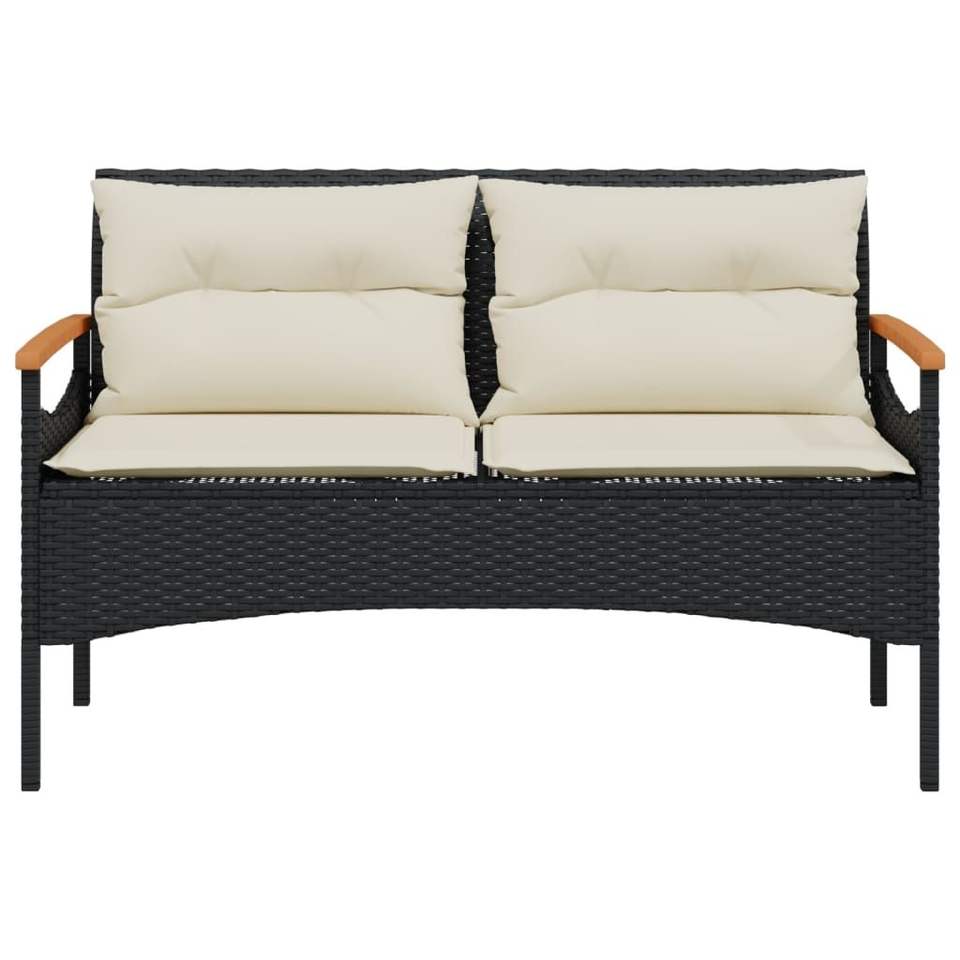 Set Divano da Giardino in Rattan Nero con Cuscini, 3 Posti, Arredamento da Esterno dal Design Contemporaneo con Struttura in Legno di Teak