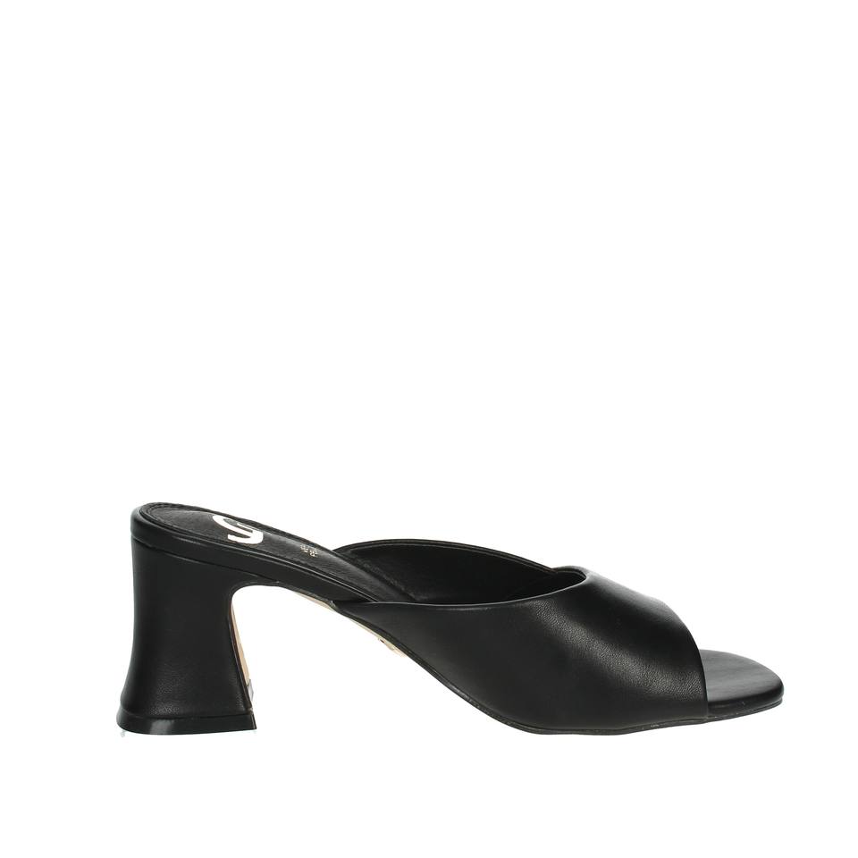 Black Gd40 Slippers with Ankle Strap 8cm Thin Heel Office Pumps Open Toe Heel Sandals with Rhinestones PU Insole Slip-on Closure