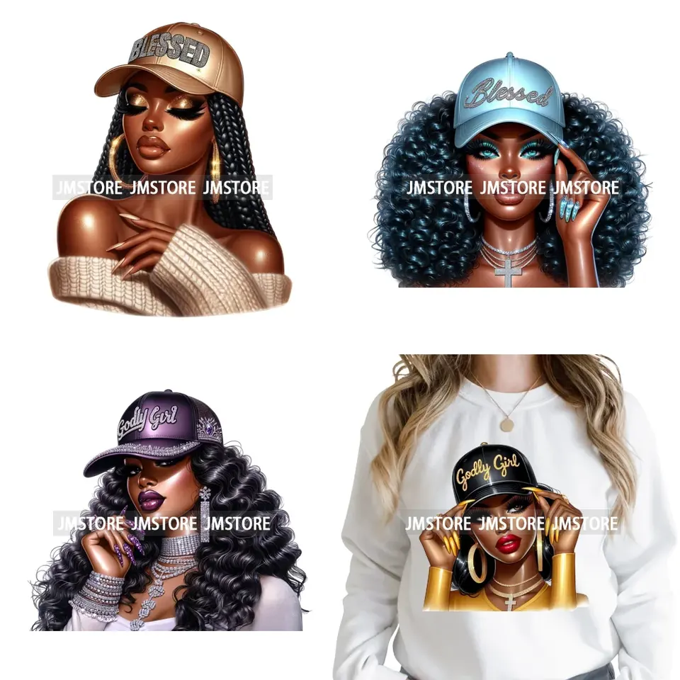 Adesivi Termotrasferibili DTF Lavabili Pronti da Applicare per Felpe con Motivo 'Black Girl Magic' e 'Christian Jesus Faith Blessed Pray'