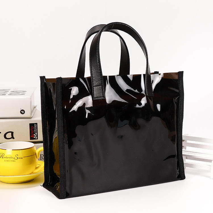 Nome:Borsa grande in PVC lucido nero, borsa tote in PVC brillante
