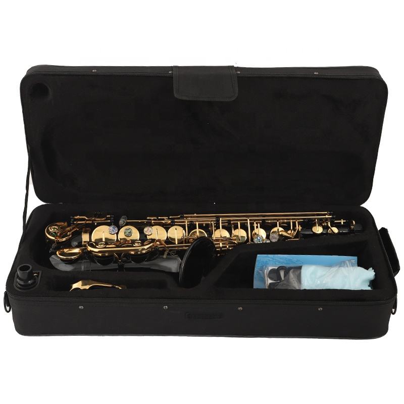 Sassofono Contralto Professionale S-20 in Ottone Laccato Nero e Oro con Accessori, Modello Eb con Decorazioni Colorate