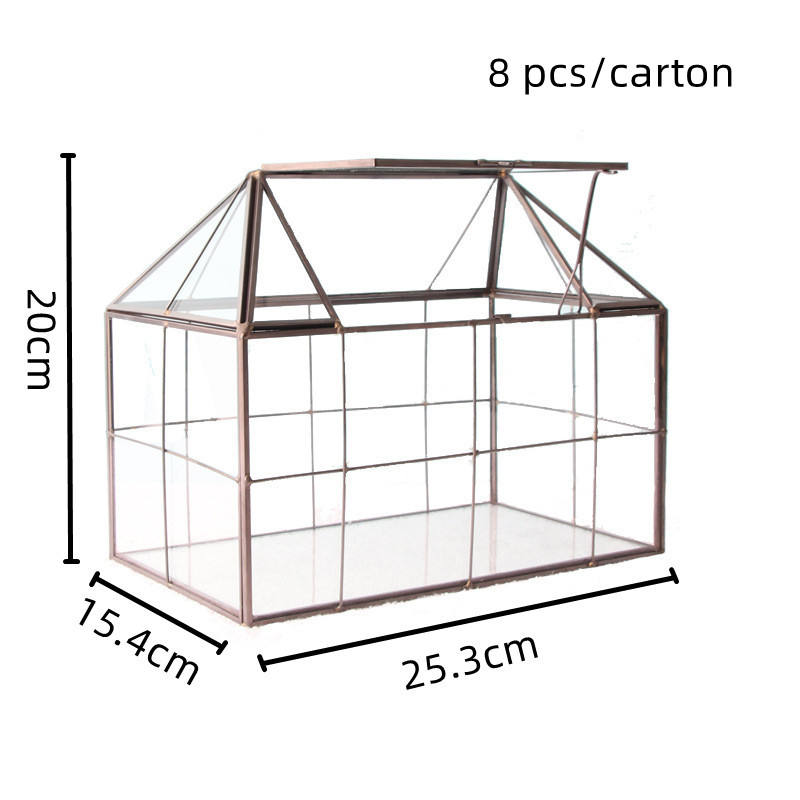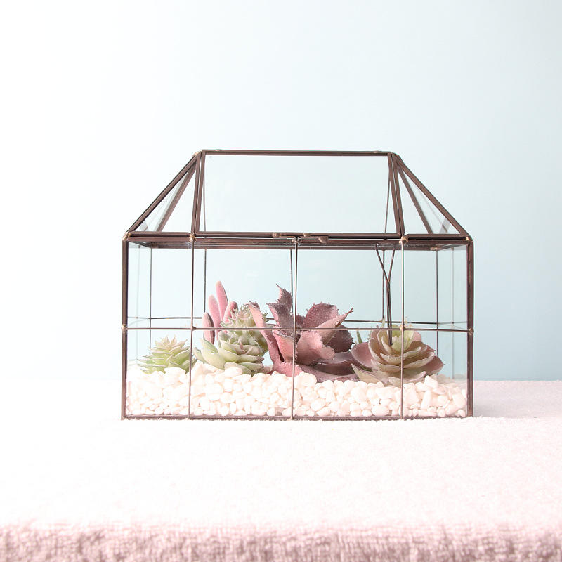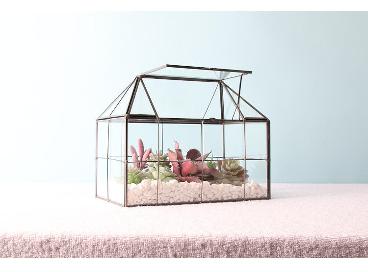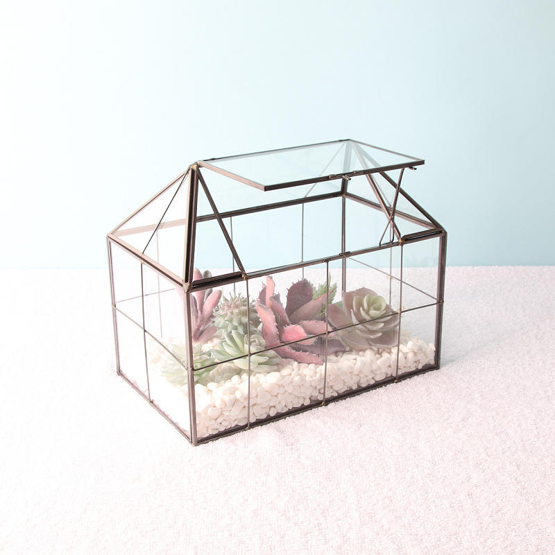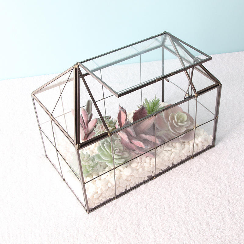 Nero dorato trasparente grande griglia da tavolo a forma di casa pianta succulenta vaso di fiori scatola geometrica terrario vaso di vetro