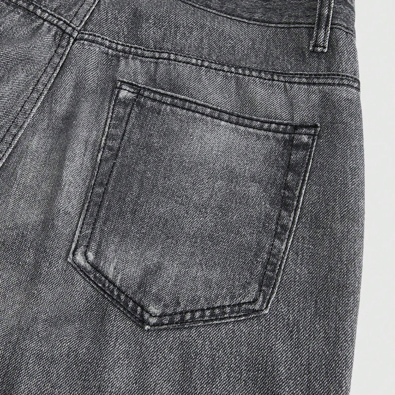Jeans Neri Graffiti - Micro-svasati, Strappati, Stampati e Dipinti a Spruzzo con Gradiente Rosso e Bianco, Pantaloni a Vita Alta all'Ingrosso