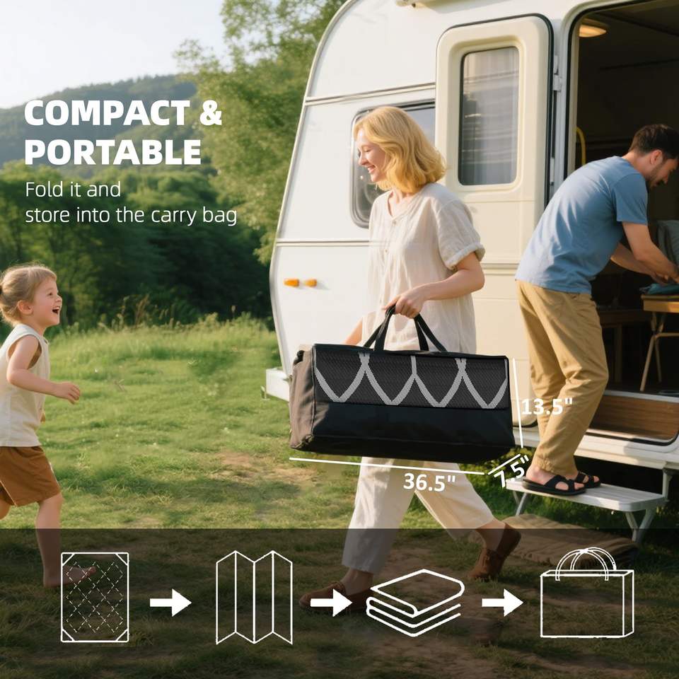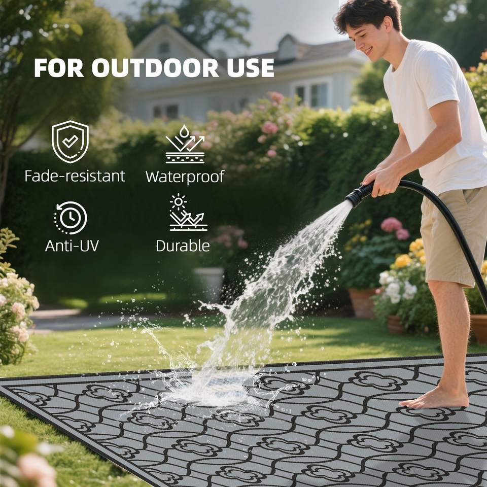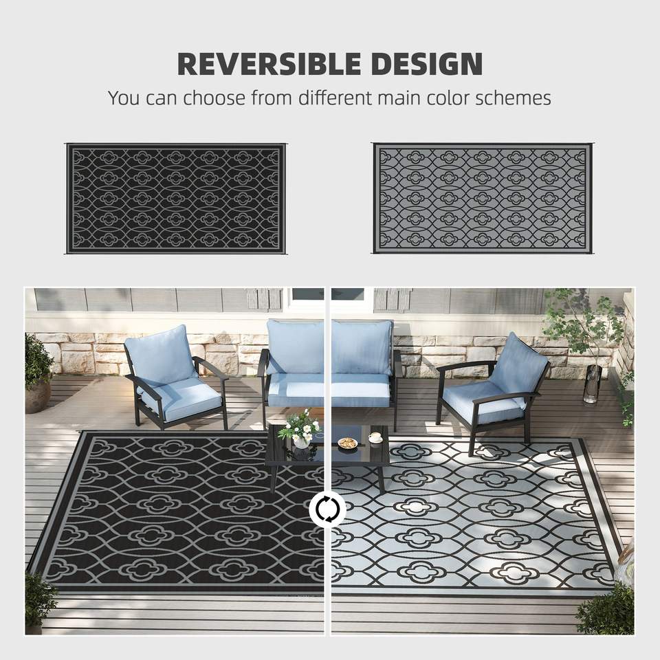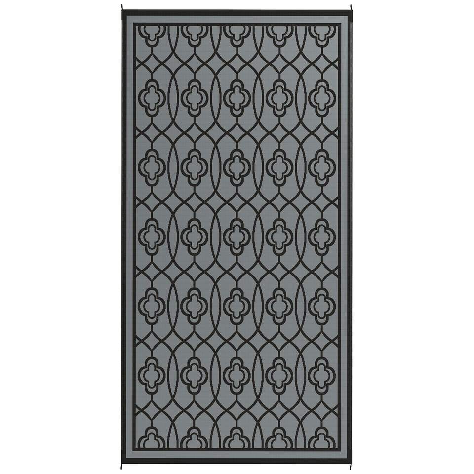Black & Gray Lantern Reversible Outdoor Rug Waterproof Plastic Straw with Carry Bag 9' X 18'