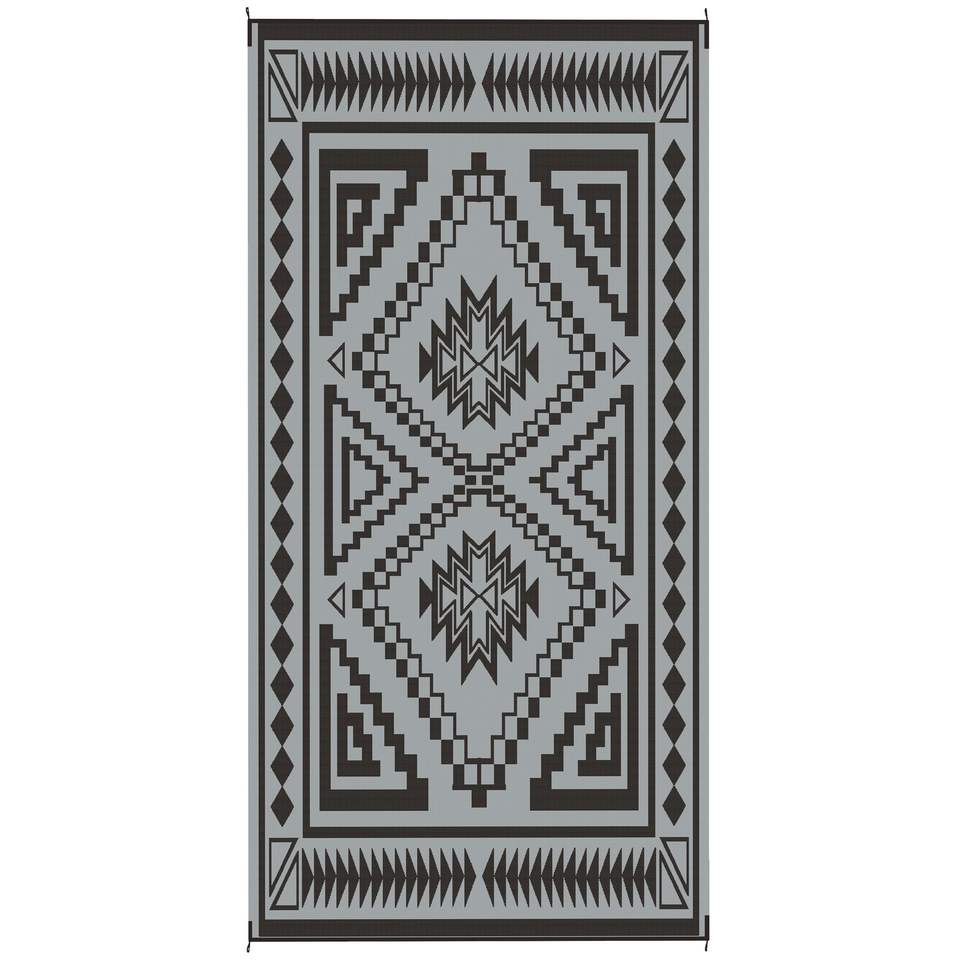 Black & Gray Reversible Outdoor Rug Waterproof Plastic Straw with Carry Bag 9' X 18' Square Patchwork Design
