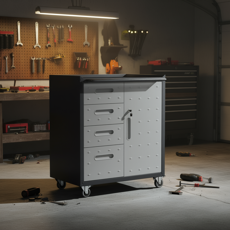 Armadio Portautensili 1230x710x300mm con 4 Cassetti, Ruote Bloccabili, per Uso Industriale, Garage, Ufficio e Casa