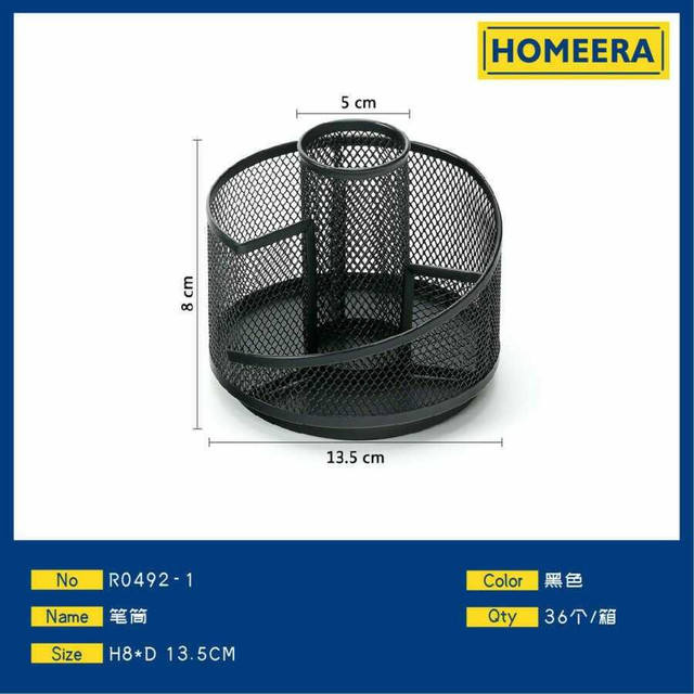 Black H8xD135CM Mesh Pen Holder Organizer Metal Office Desk Storage Solution for Pencils