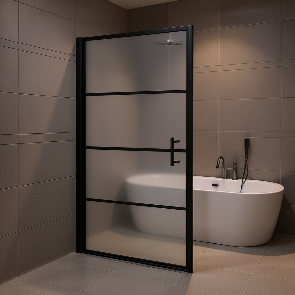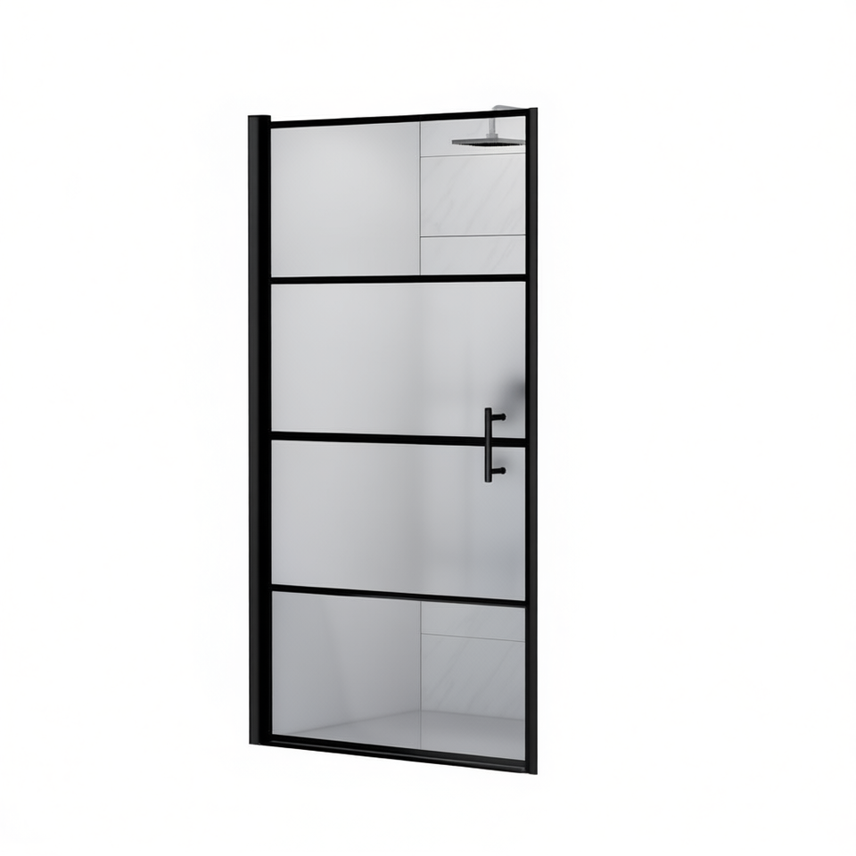 Porta Doccia Scorrevole in Vetro Temperato Nero Semi-Opaco 35.8x76.8 Pollici con Telaio Design Minimalista