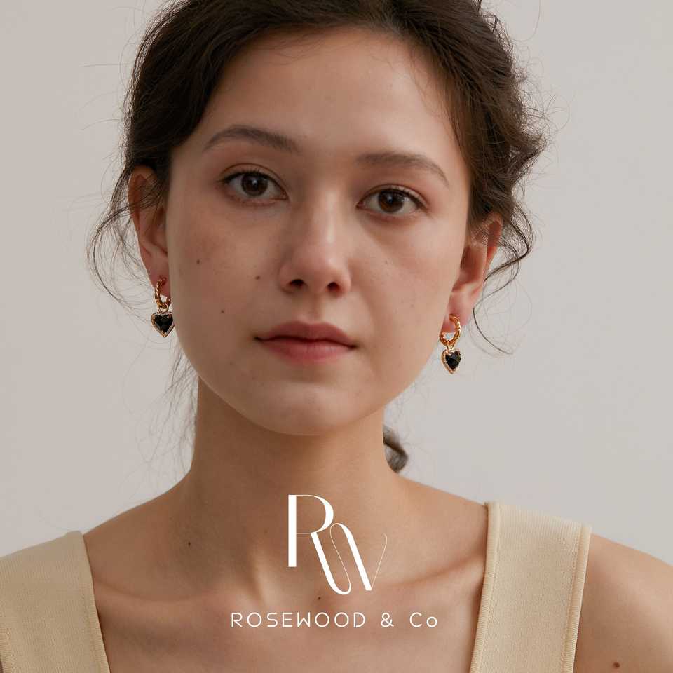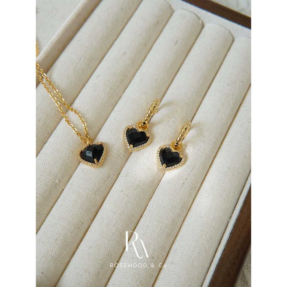 Orecchini Pendenti a Cuore Nero Intrecciati in Oro, Leggeri, con Pietra Nera, Anelli a Cerchio, Set di Gioielli alla Moda che non si ossidano
