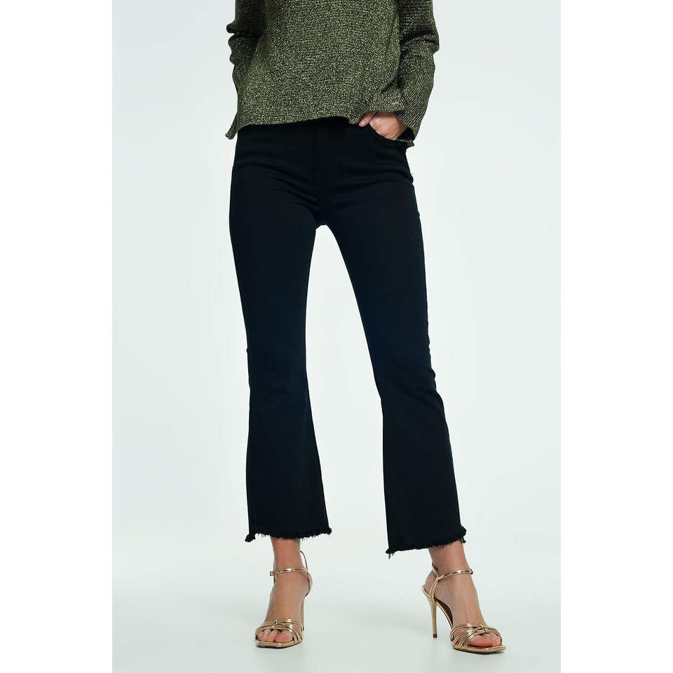 Jeans Neri a Vita Alta con Orlo Grezzo e Gamba Svasata per Donna, Design Casual a Taglio Bootcut con Vita Bassa, Vestibilità Aderente e Decorazioni Strappate