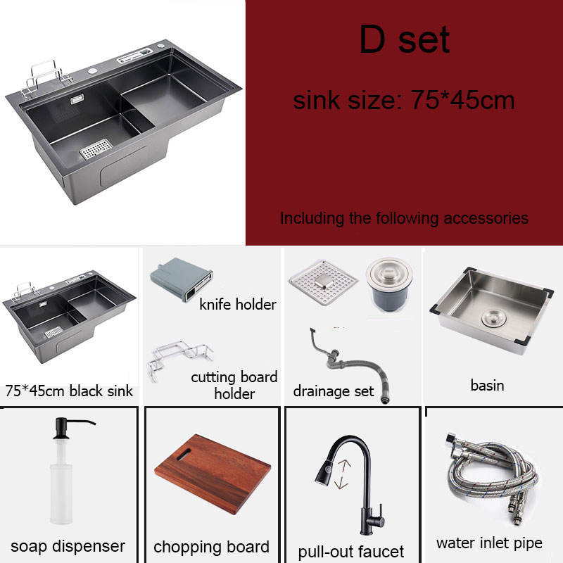 Black High and Low Sink Kitchen Sink With Knife Holder Vegetable Washing Basin With Cutting Board Stainless Steel Pia Black Sink