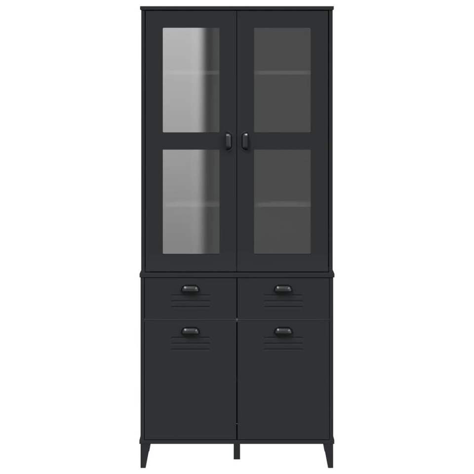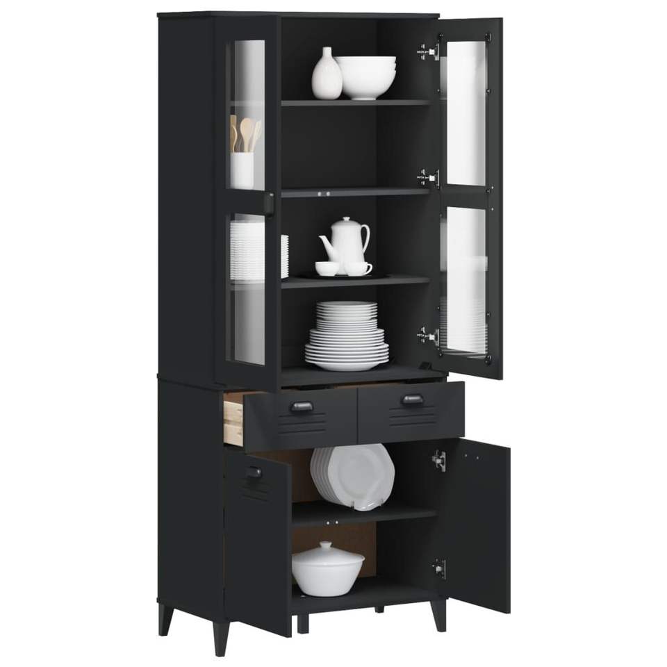 Vetrina Nera con Ante in Vetro e Cassetti, Arredamento Moderno per la Casa