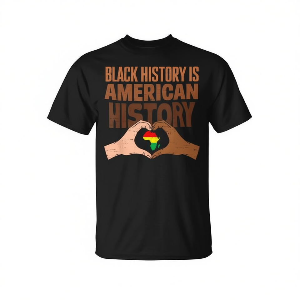 La storia dei neri è la storia americana. T-shirt con stampa a cuore e mano, Orgoglio africano.