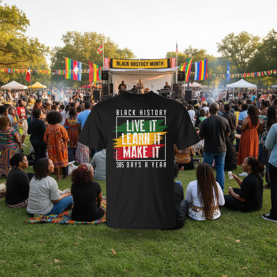 Maglietta Black History Month 365 Days Live IT Learn IT Make IT Abbigliamento promozionale