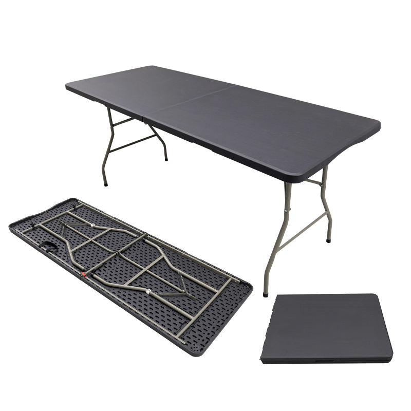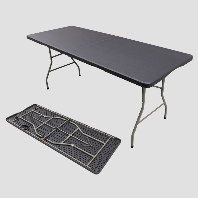 Nero vendita calda tavolo da giardino 6FT Rattan nero pieghevole resistente Catering all'aperto cavalletto portatile in plastica pieghevole tavolo