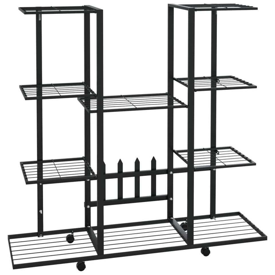 Black Iron Flower Stand with Wheels 37.2"x9.6"x36" Versatile Storage Solution
