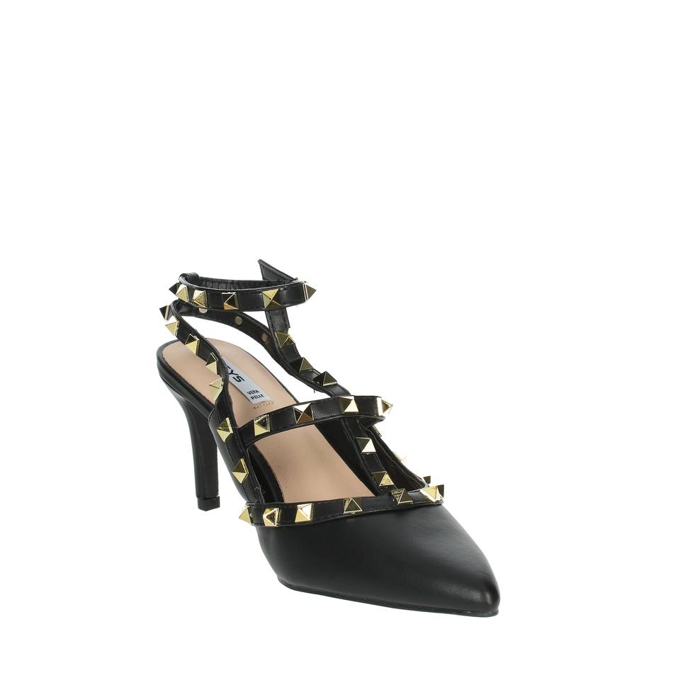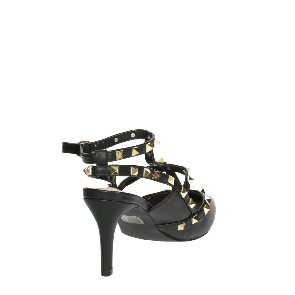 Black K-9340 Slingback Pumps High Heel Lace Sandals Thin Heels Pointed Toe Fashionable Deco Stones High Quality 8cm Heel Height