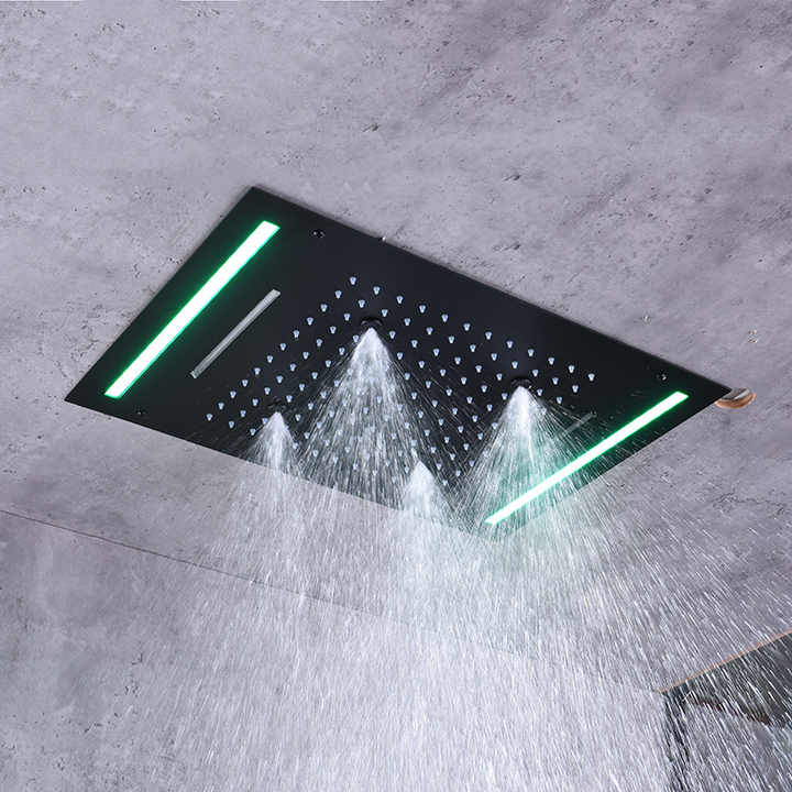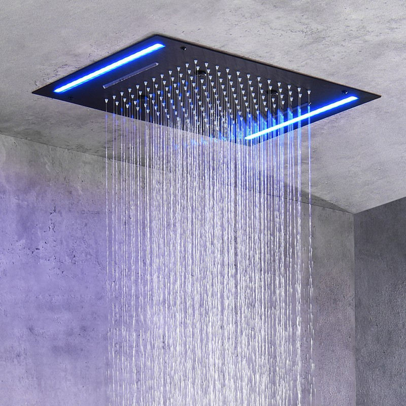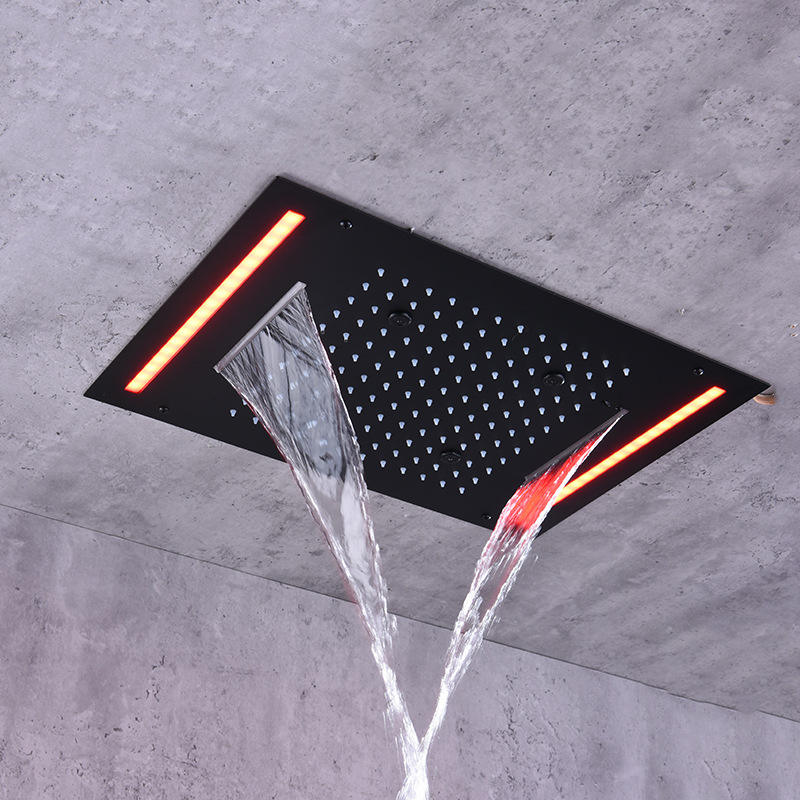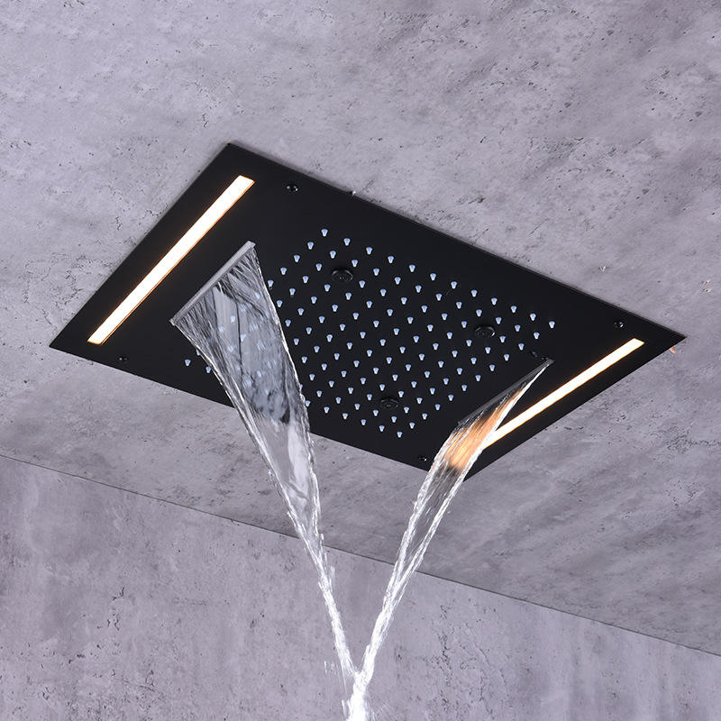 Nero LED pioggia cascata doccia soffitto montato smart soffione doccia bagno quadrato soffione