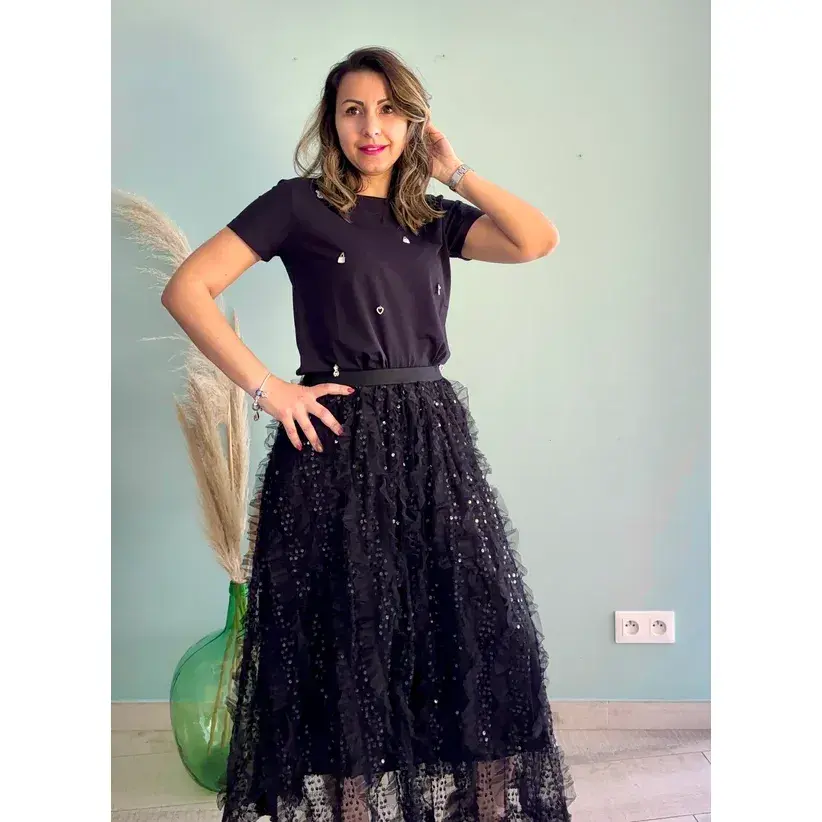 Black Large Lena Skirt Breathable Casual Empire Waistline Featuring Print Decoration Woven Silk Chiffon Knitted Casual Line
