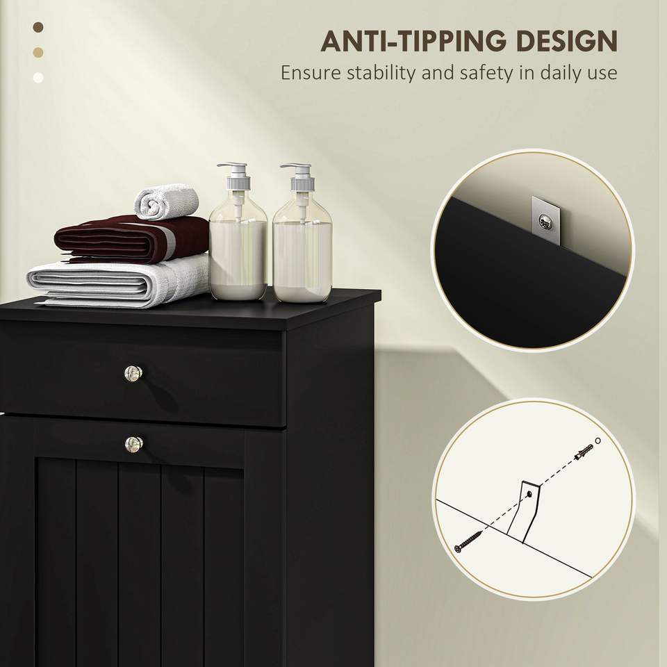 Black Laundry Hamper Cabinet with Tilt Out Basket and Drawer Practical Storage Solution