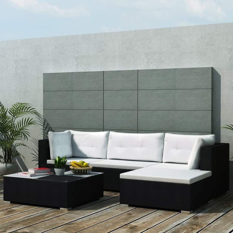 Set Lounge da Giardino in Rattan Nero a 4 Posti, Arredamento da Esterno dal Design Contemporaneo per il Relax in Giardino