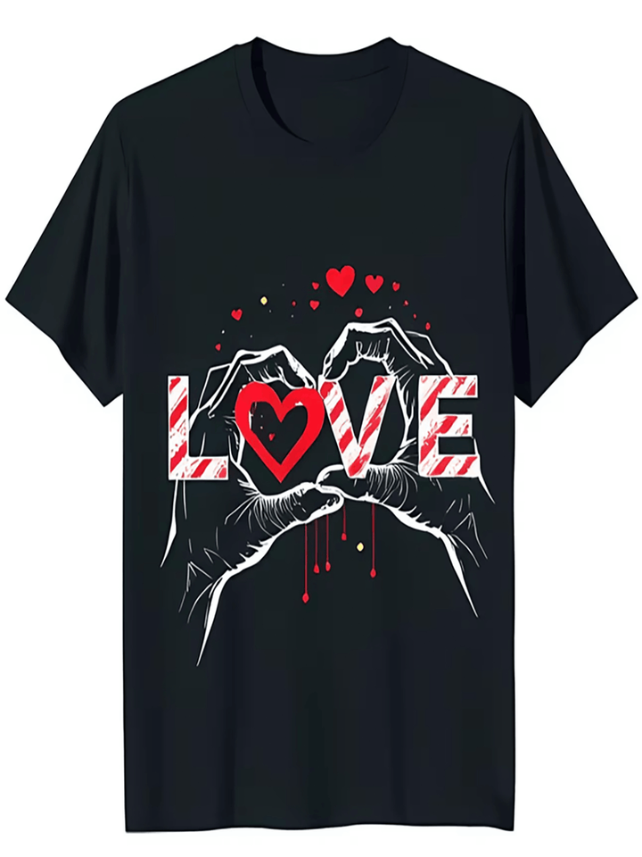 Black Love Heart Hand T-Shirt Unisex Short Sleeve Regular Fit 100% Cotton Casual Jersey Print Front O-Neck