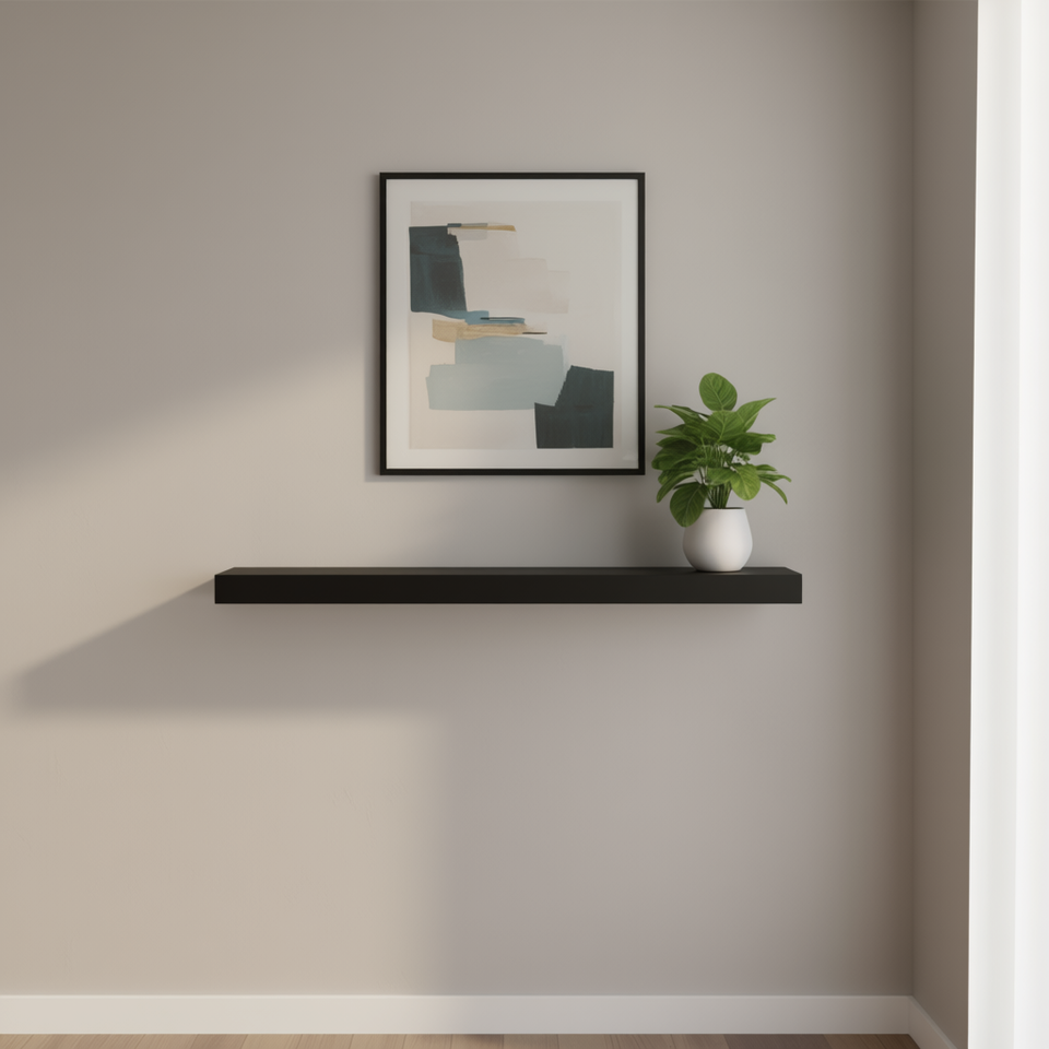 Black MDF Floating Wall Shelf 31.5x9.3x1.5 Inches Stylish Display For Home Office Living Room