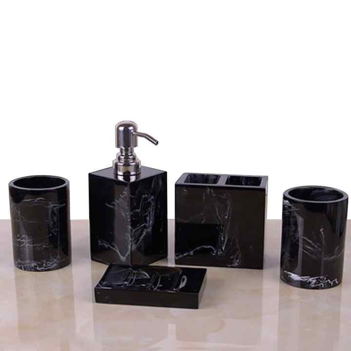Black marble effect Modern Hotel resin Bathroom Accessories set
