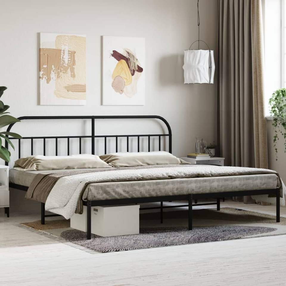 Struttura del letto in metallo nero con testiera 76 \ "x79.9 \" senza materasso