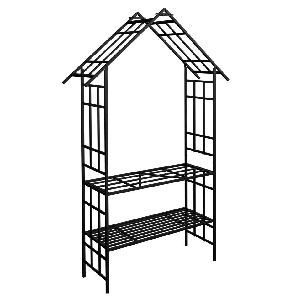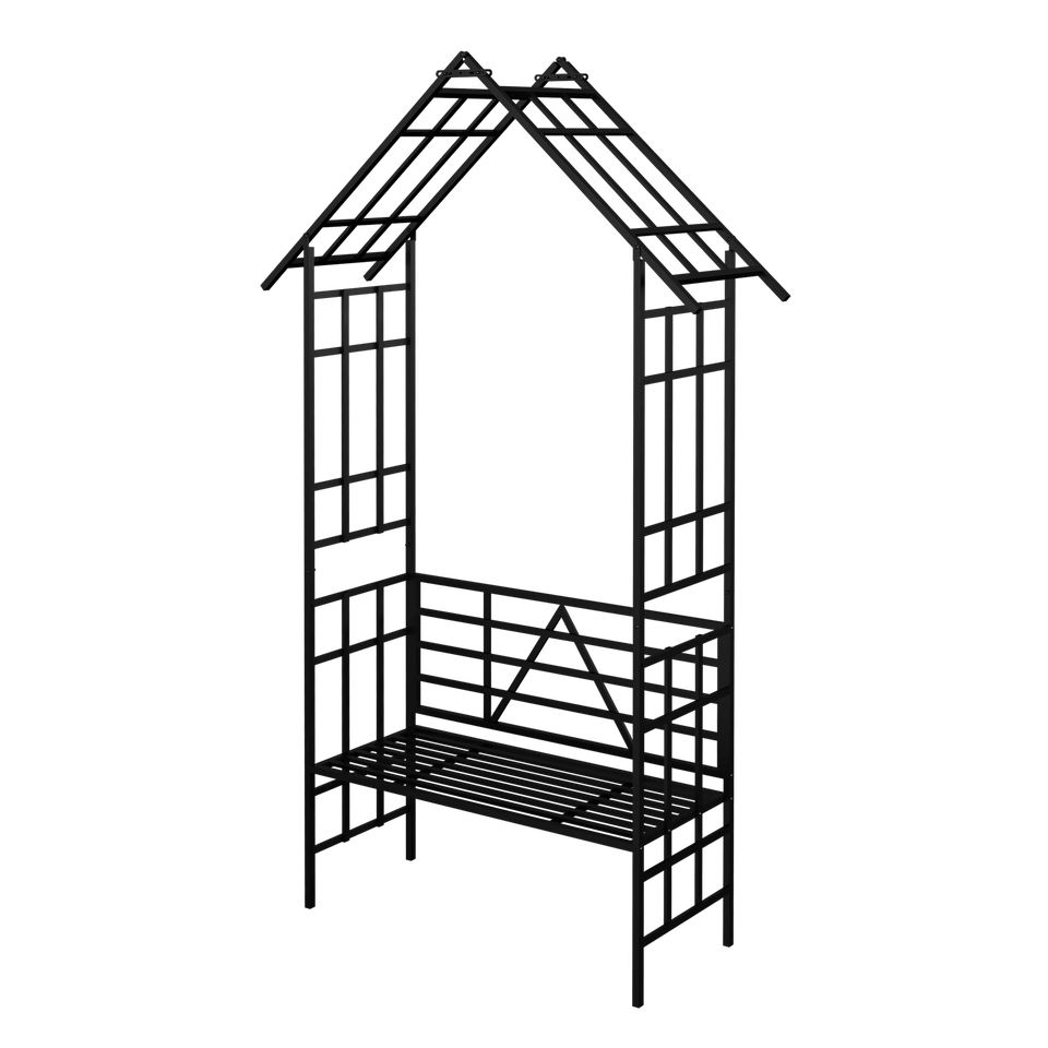 Arco da Giardino in Metallo Nero con Panchina W58.07*H97.24, Supporto per Piante Rampicanti, Arco per Rose, Set da Giardino per Esterni