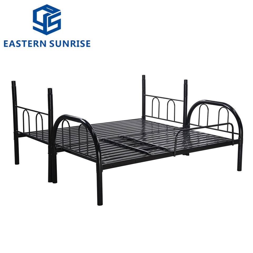 Letto a Castello in Metallo Nero con Ringhiera di Sicurezza e Scala Laterale per Uso in Dormitorio