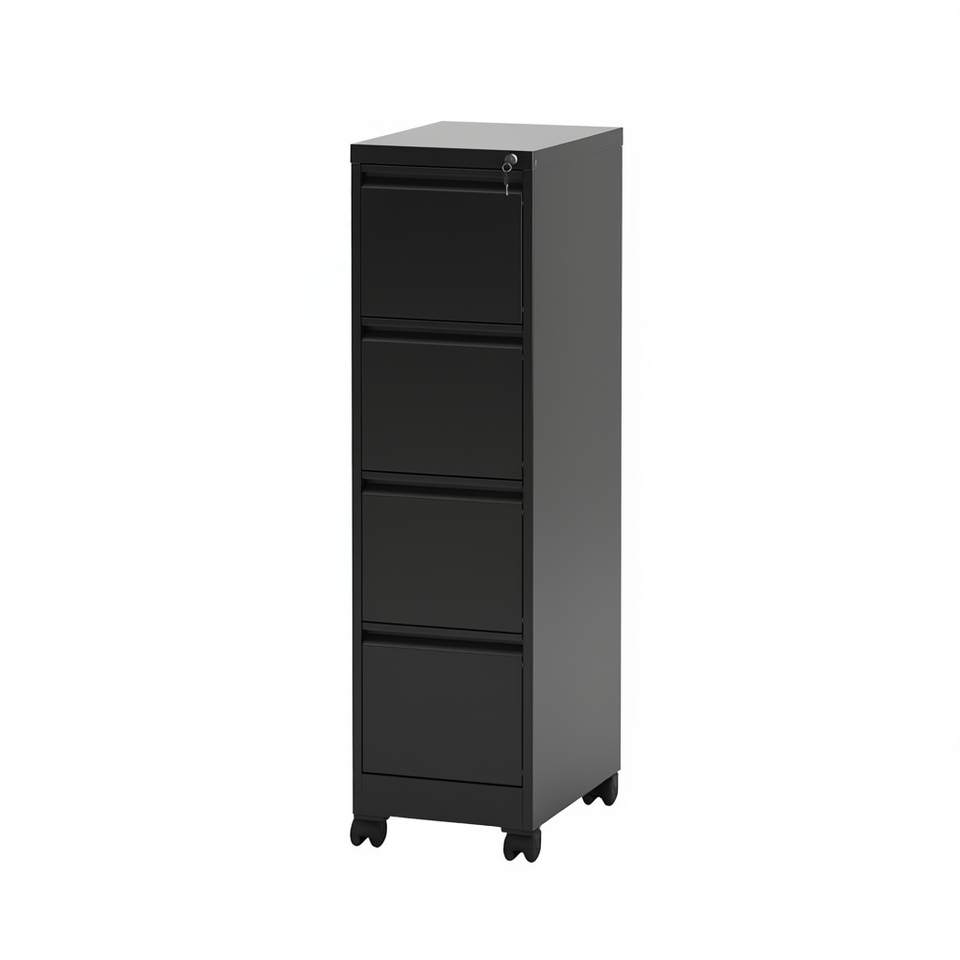 Black Metal Vertical File Cabinet 4 Drawers Lockable Heavy Duty with Wheels for Office Home Use