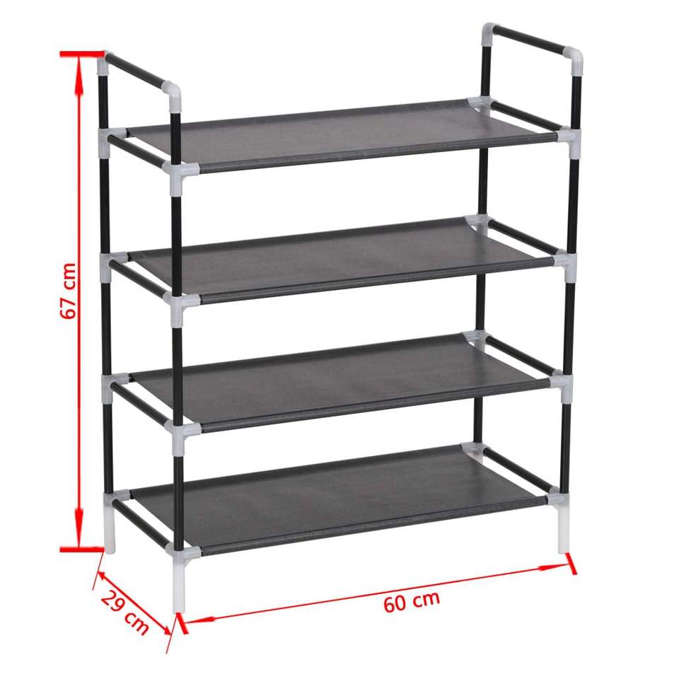 Scarpiera in metallo nero e tessuto Non tessuto con 4 ripiani