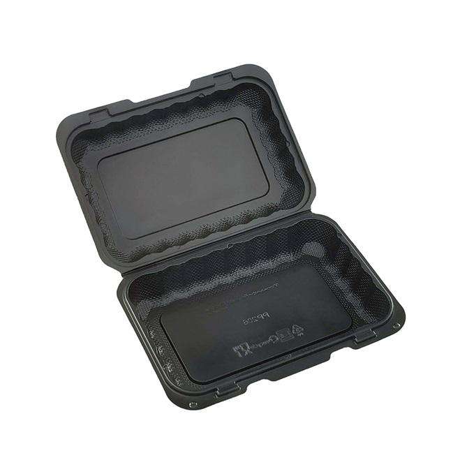 Black Minimalist PP Hinged 1-Comp Food Container 9 X 6 Microwave Safe Takeout Kitchen Camping Use Flip Top Lid